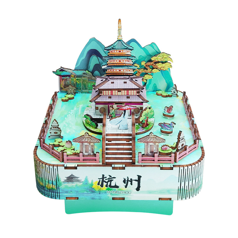城市文创系列音乐盒北京湖南杭州旅游纪念品动态立体八音盒3D拼图