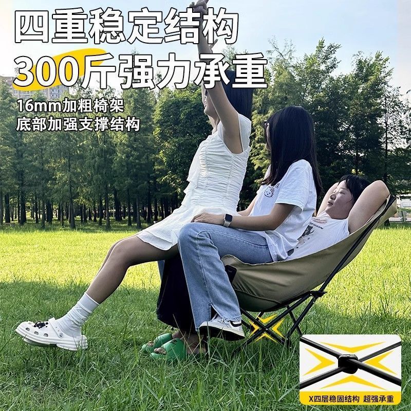 户外月亮椅露营椅阳台躺椅家用休闲折叠椅带脚托三挡可调节折叠椅