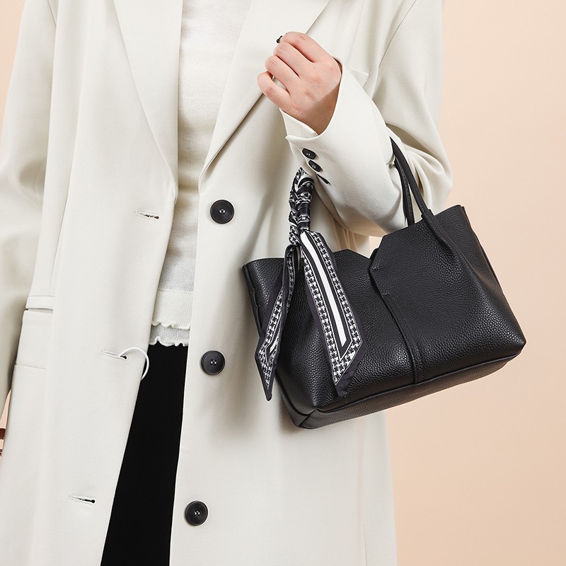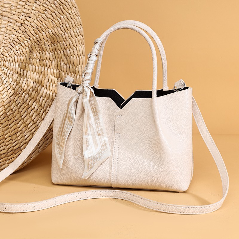 头层牛皮包包女简约手提水桶包外贸真皮女包轻奢质感单肩斜挎包