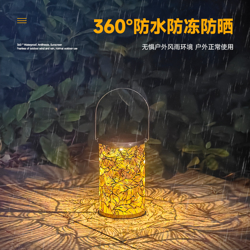 跨境太阳能灯铁艺镂空灯罩户外防水庭院灯草坪花园夜晚氛围景观灯