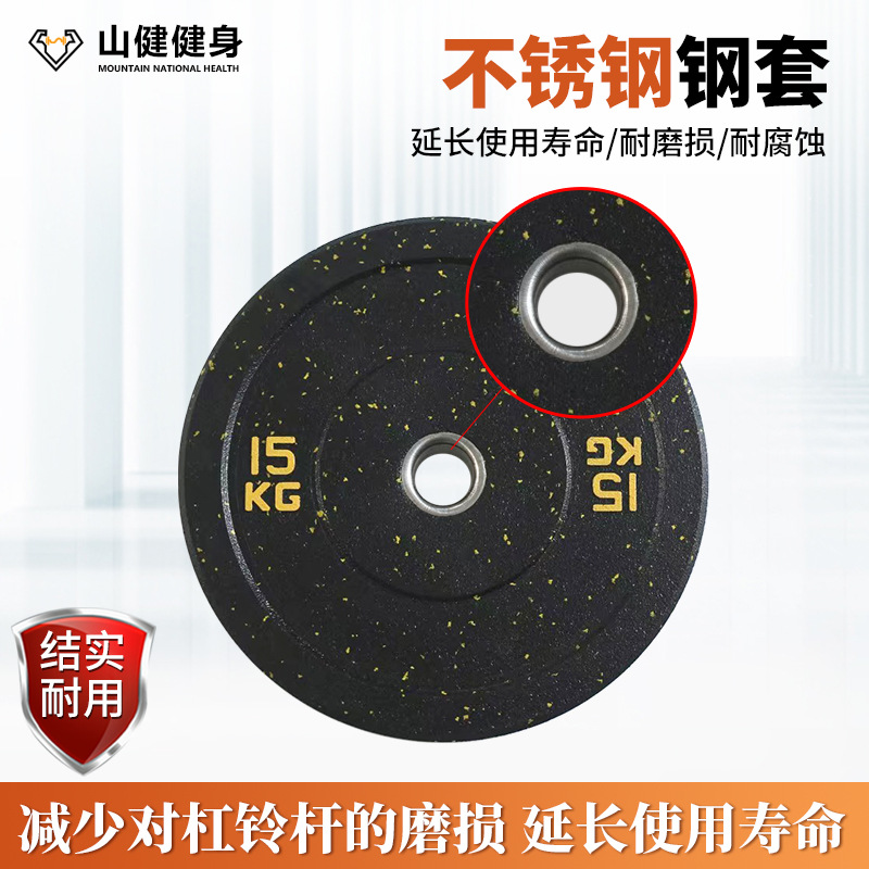 杠铃片高弹颗粒大孔径举重训练塑性运动竞技健身房高弹颗粒杠铃片