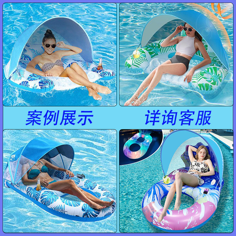 厂家定制新款遮阳浮排 泳池防晒遮阳蓬躺椅 水上漂浮可折叠