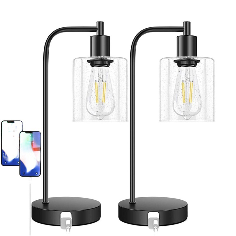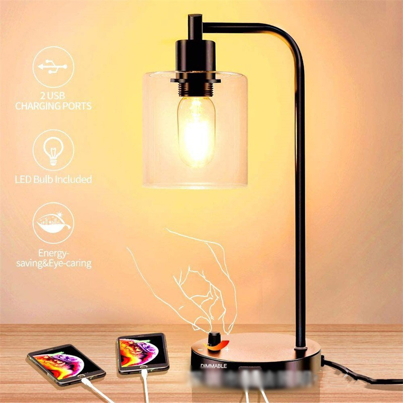 卧室简约创意usb无线充电触摸调光工业玻璃led阅读床头灯美式台灯