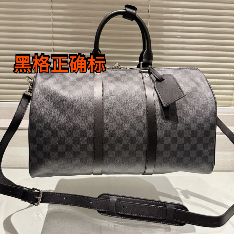 Aio格子旅行包男士手提包大容量短途出差行李包时尚单肩keepall