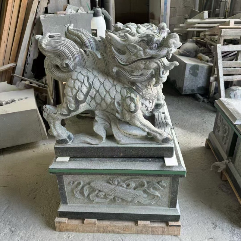 石雕麒麟 一对花岗岩青石龙爪别墅豪宅门前摆件 看门花岗岩麒麟