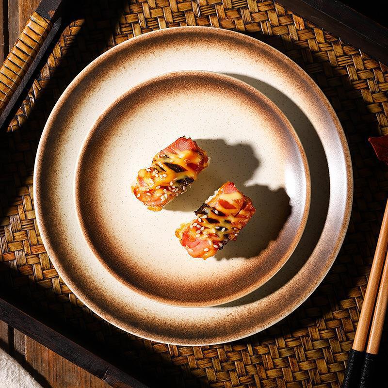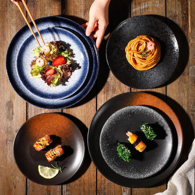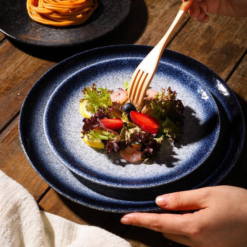 日式餐具复古陶瓷盘子菜盘家用饺子盘釉下彩陶瓷牛排盘餐厅浅盘子