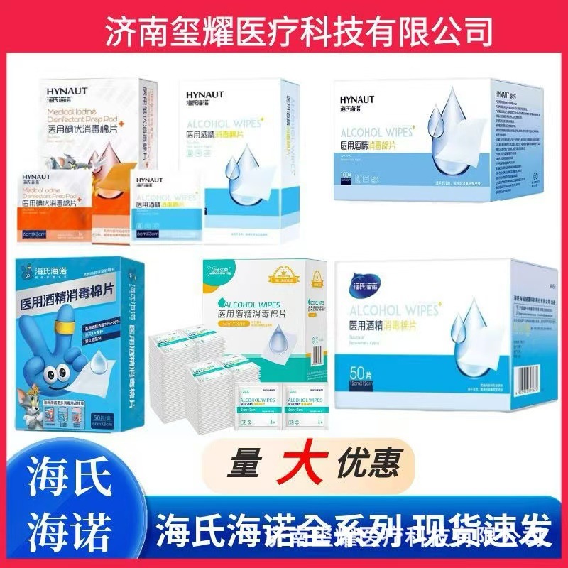海氏海诺医用酒精消毒棉片50片6cm*3cm独立包装碘伏酒精消毒棉片