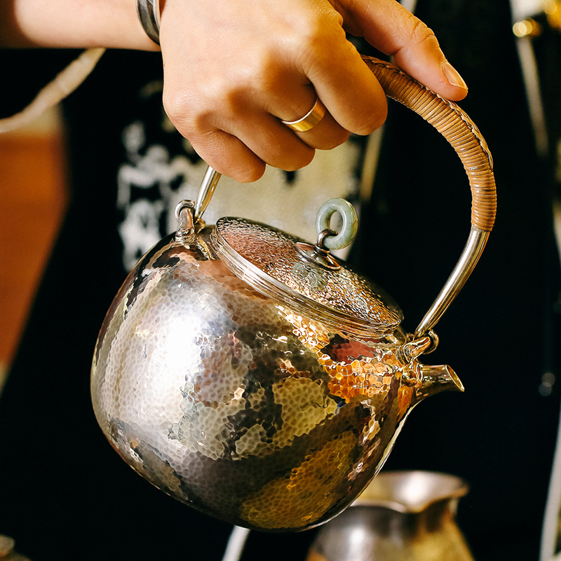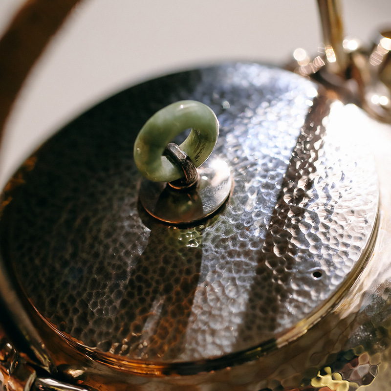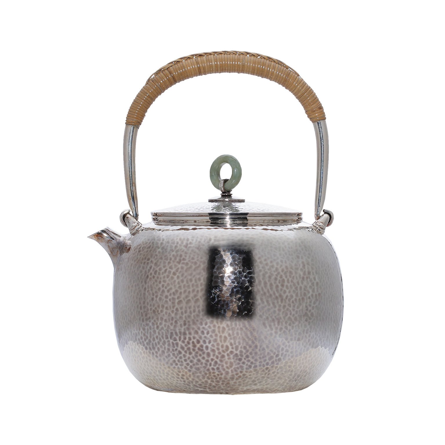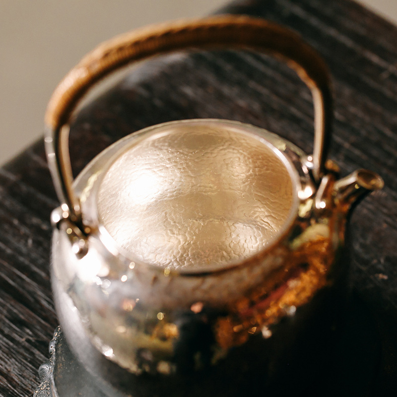 一张打提梁手工锤纹 银壶足银999烧水壶 养生泡茶壶提梁壶
