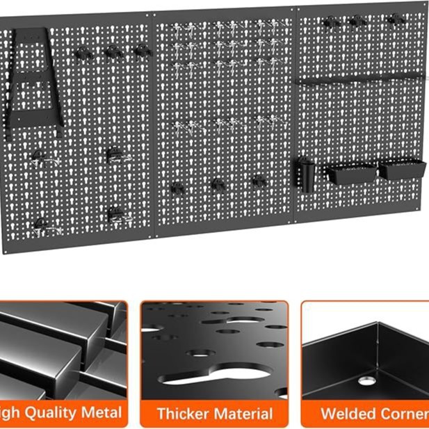 3件金属钉板适用车库墙壁实用工具钉板存储模块化钉板收纳板套件