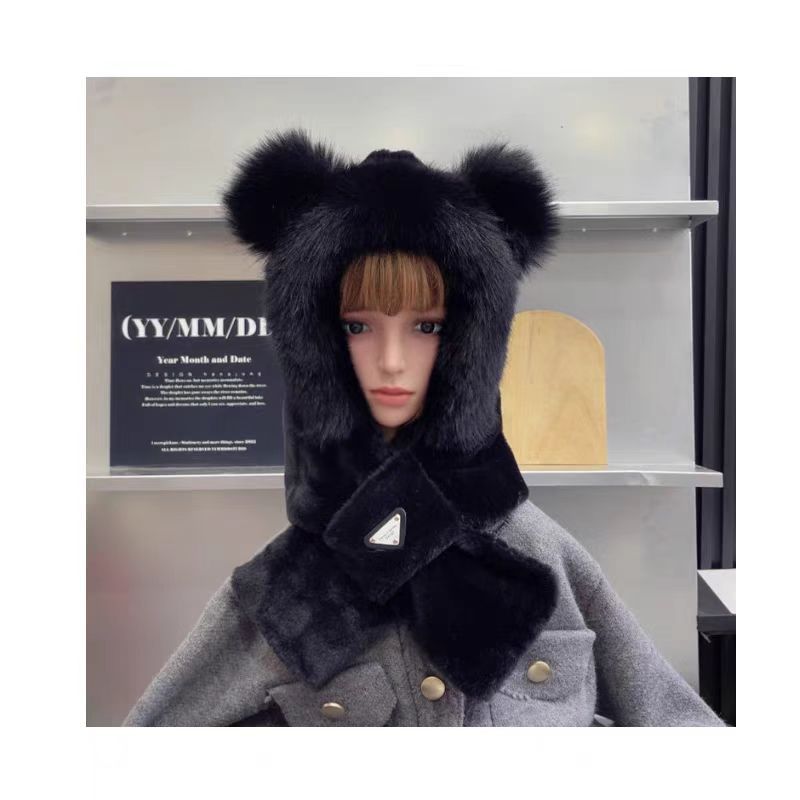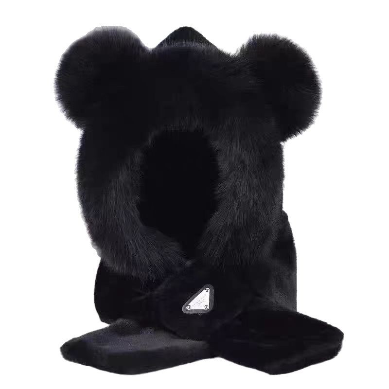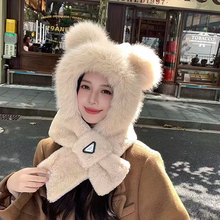 2024新款帽子围巾一体女小熊帽 秋冬连帽围脖加厚毛绒护耳帽百搭
