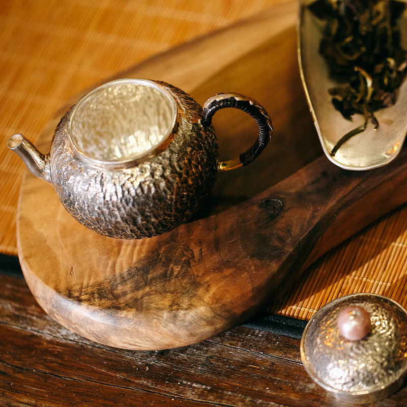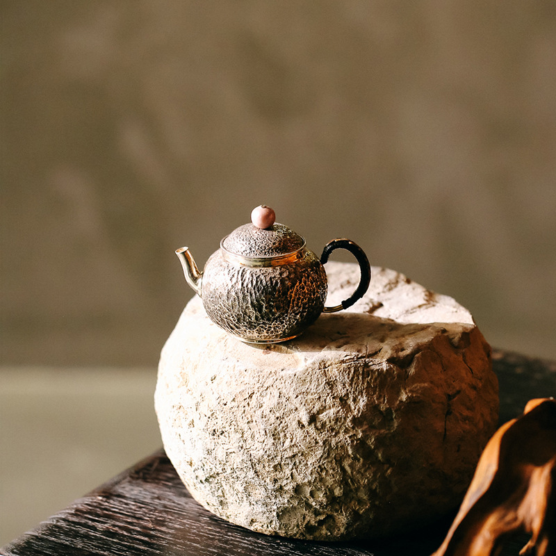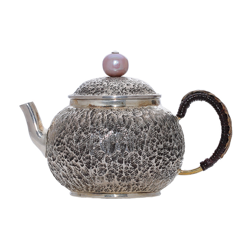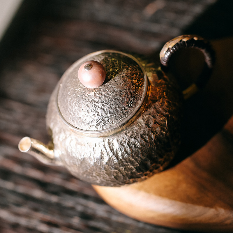 定制石纹小壶 创意手工银壶足银999烧水壶 手工锤纹银壶烧水煮茶