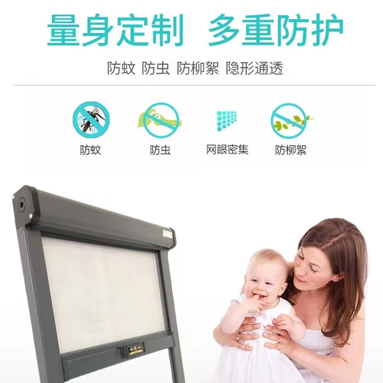 定制隐形纱窗无底框防蚊防虫纱窗伸缩卷筒式上下拉玻璃纤维纱网