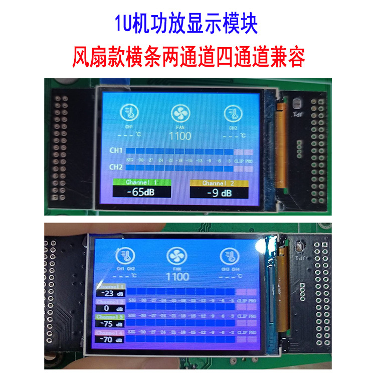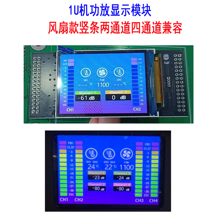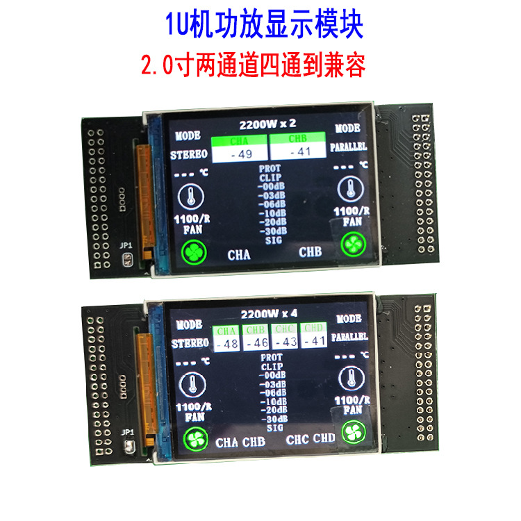 功放1U机型显示模块2.0寸TFT两通道四通道兼容多种界面可选可设计