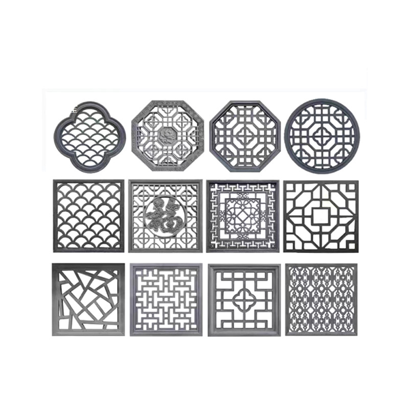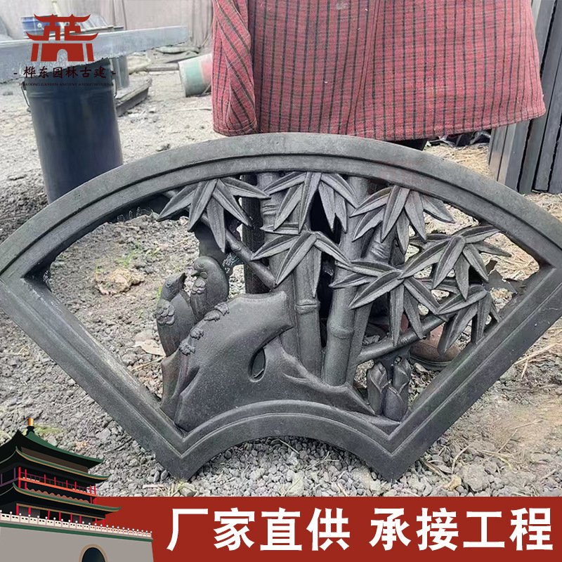 仿古花窗砖雕 庭院镂空水泥花窗四合院围墙透窗花窗格 扇形砖雕