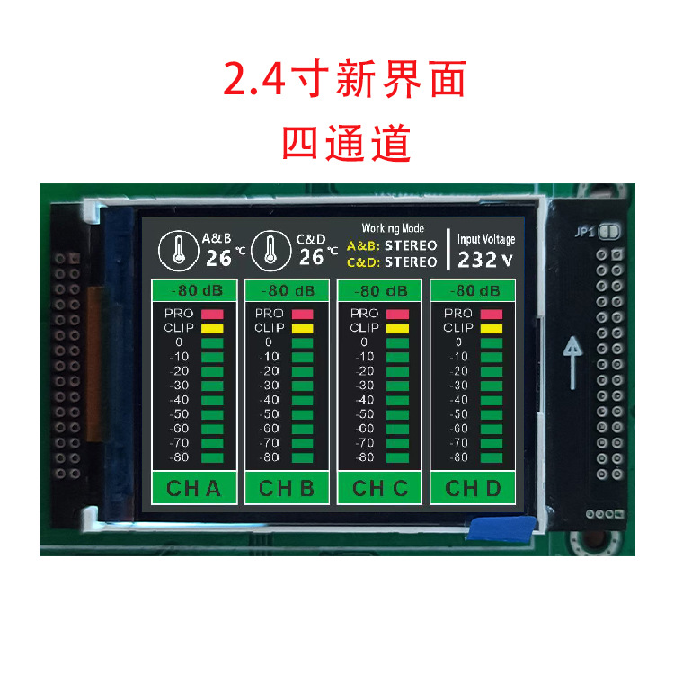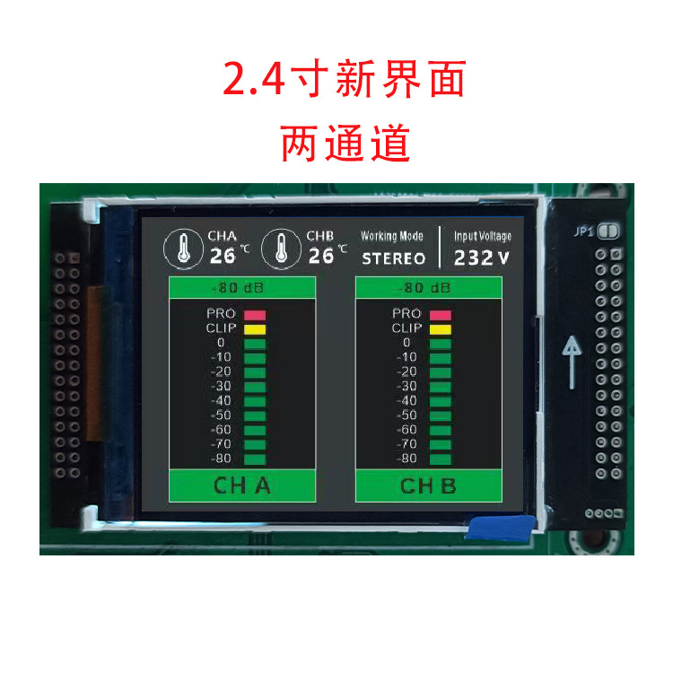 1U机型2.4寸TFT功放显示模块 分辨率320*240可设计UI多种界面可选