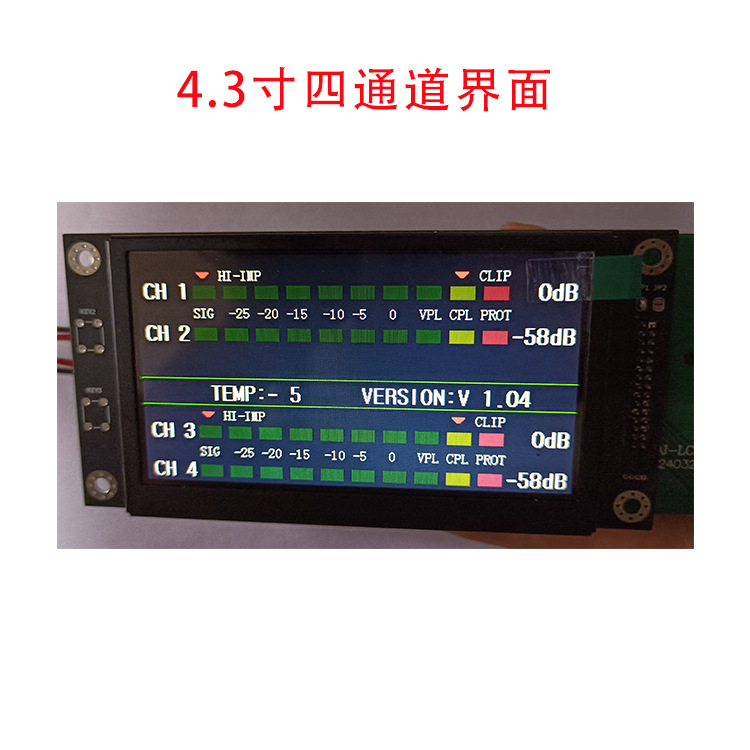 4.3寸TFT功放显示模块3U机型 分辨率480*272 两通道四通道兼容