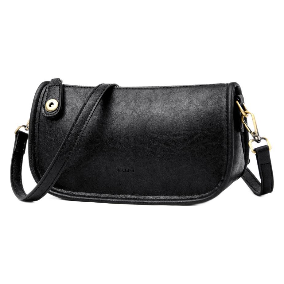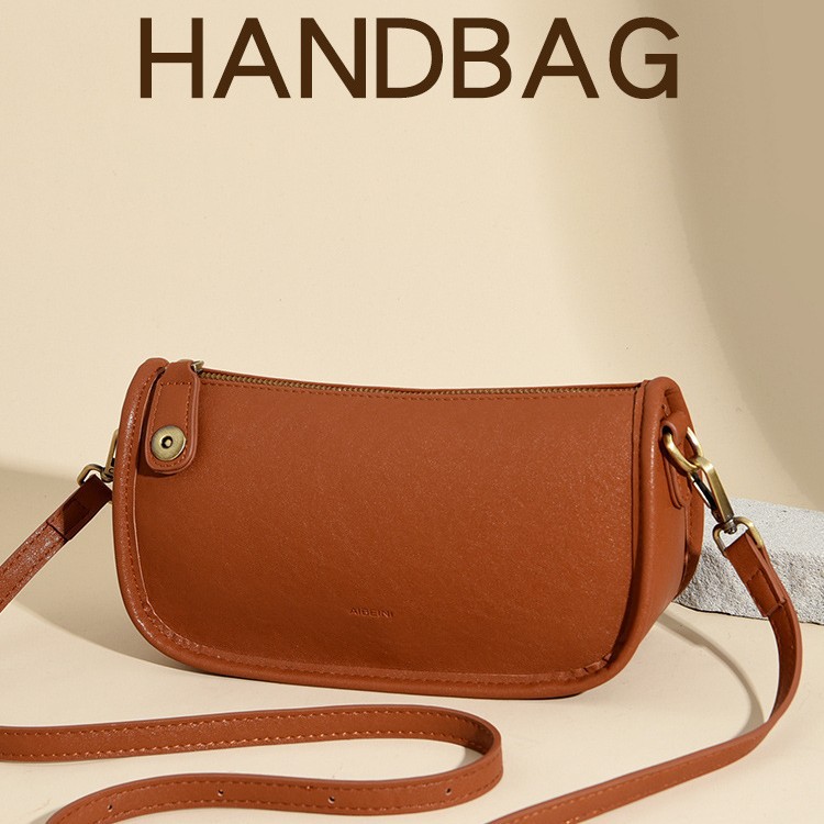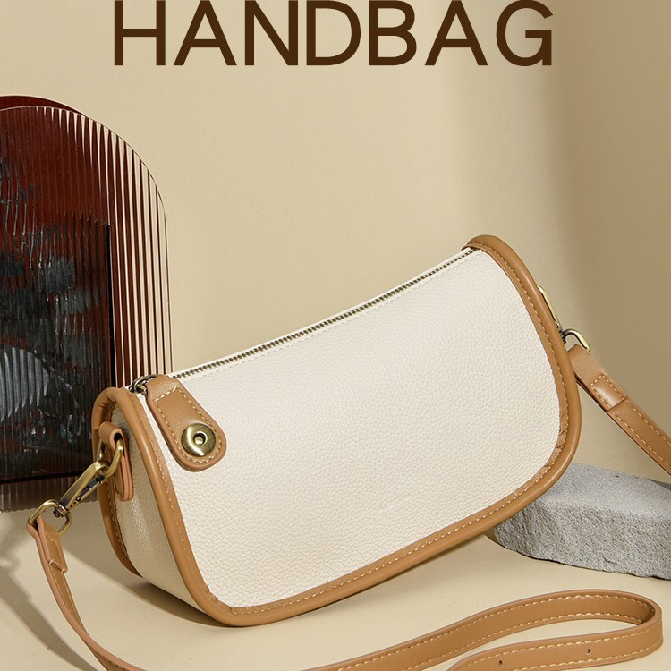 新款流行真皮女生饺子包简约线条时尚单肩斜挎包复古撞色潮流包包