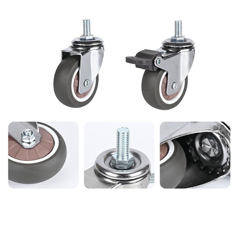 | 规格型号 | 3寸丝杆万向轮(挂铬) | 规格型号 | 3寸丝杆万向刹车轮(挂铬) |