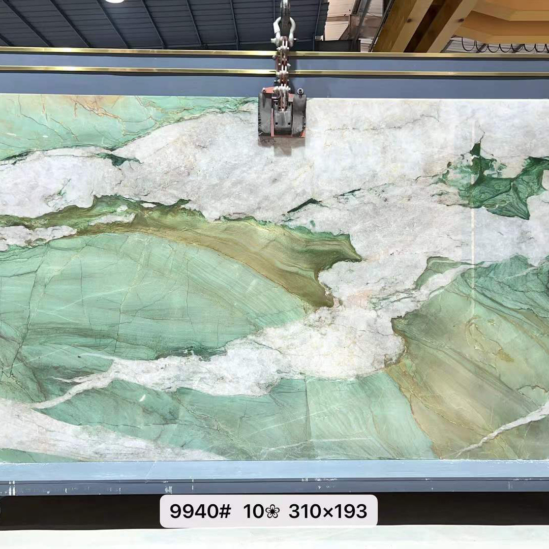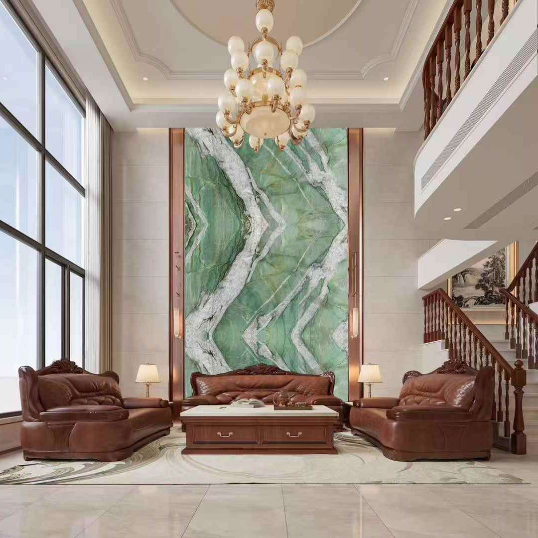 蒂夫尼绿色奢石透光石背景墙板 轻奢天然大理石墙面装饰