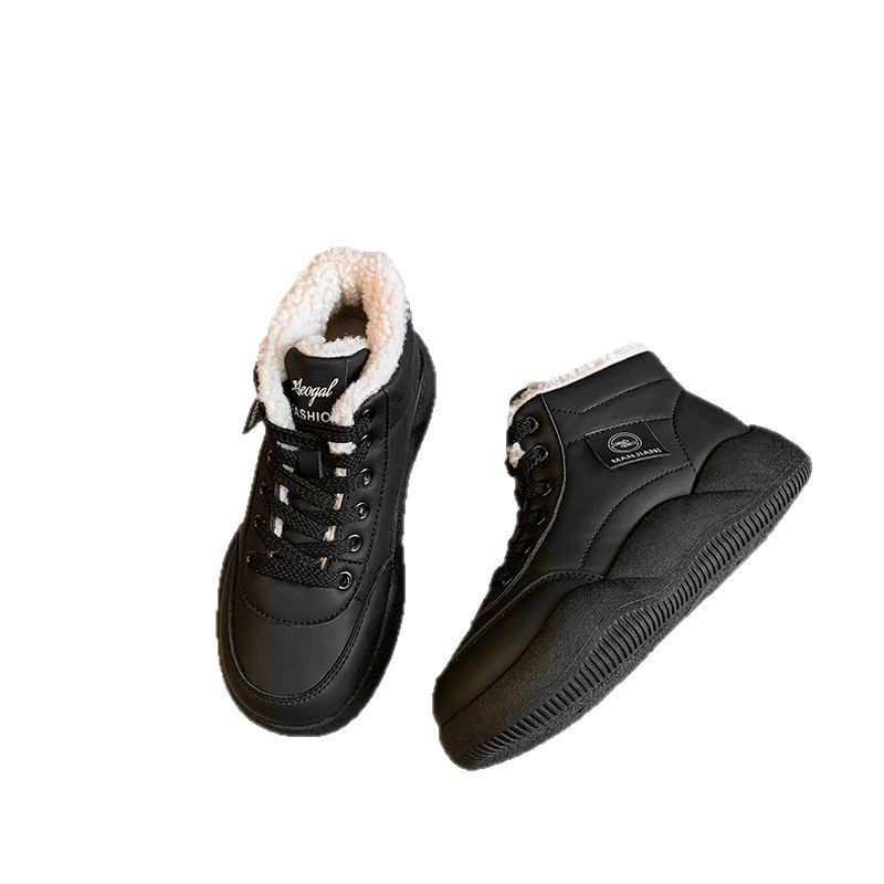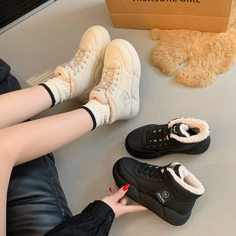 跨境外贸2025冬季加绒小白鞋女鞋高帮ins潮女款厚底板鞋休闲鞋棉