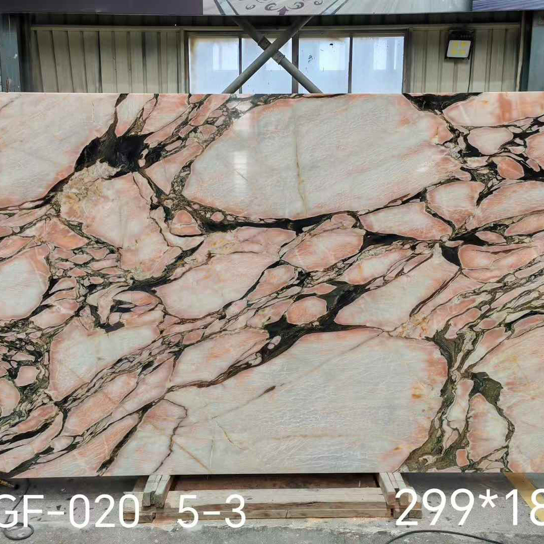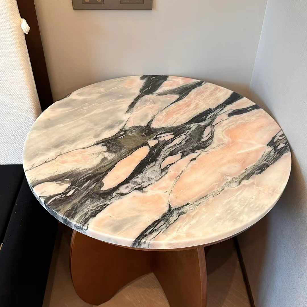 宝格力粉色大理石桌面石材 异形茶几大理石餐桌家用奢石