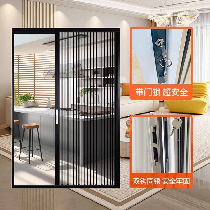 厂家定制铝合金防蚊门伸缩推拉式折叠纱门水晶板纱门金钢网防蚊门