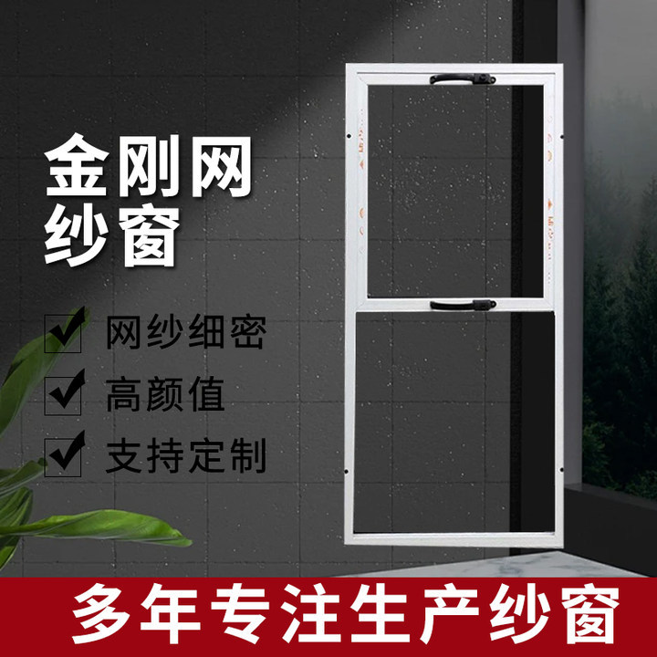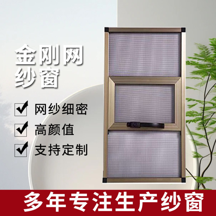厂家定制家用两推防护栏高透网纱窗 防蚊防护纱窗三推金刚网纱窗