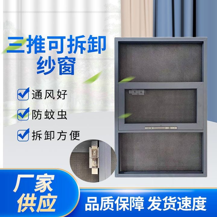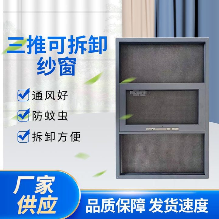 定制金刚纱窗 外开不锈钢防蚊防盗免安装纱窗 三推免钉可拆卸纱窗