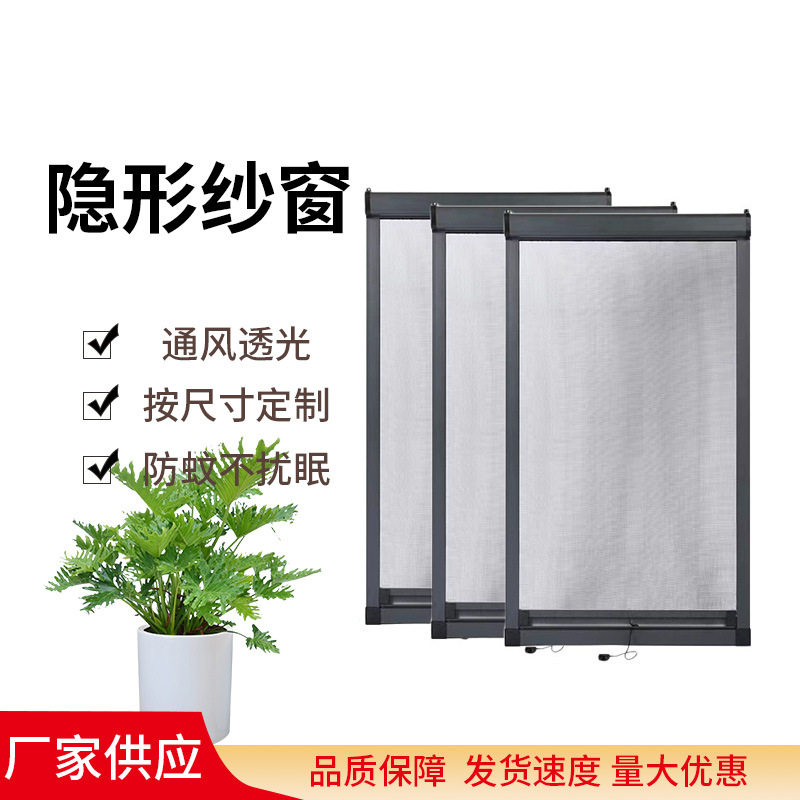 厂家定制隐形卷筒式上下伸缩自装纱窗加厚隐形纱窗防蚊铝合金纱窗