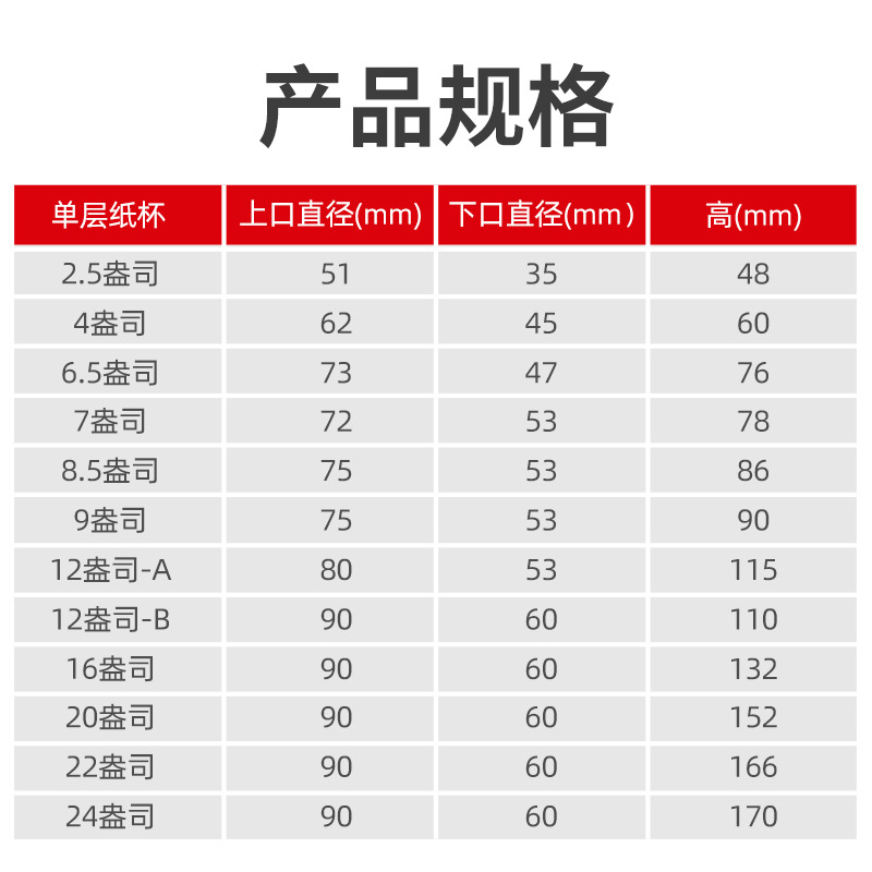 | 规格型号 | 红色纸杯(100)只;240毫升;原木纸浆+PE淋膜 | 包装型式 | 杯 |