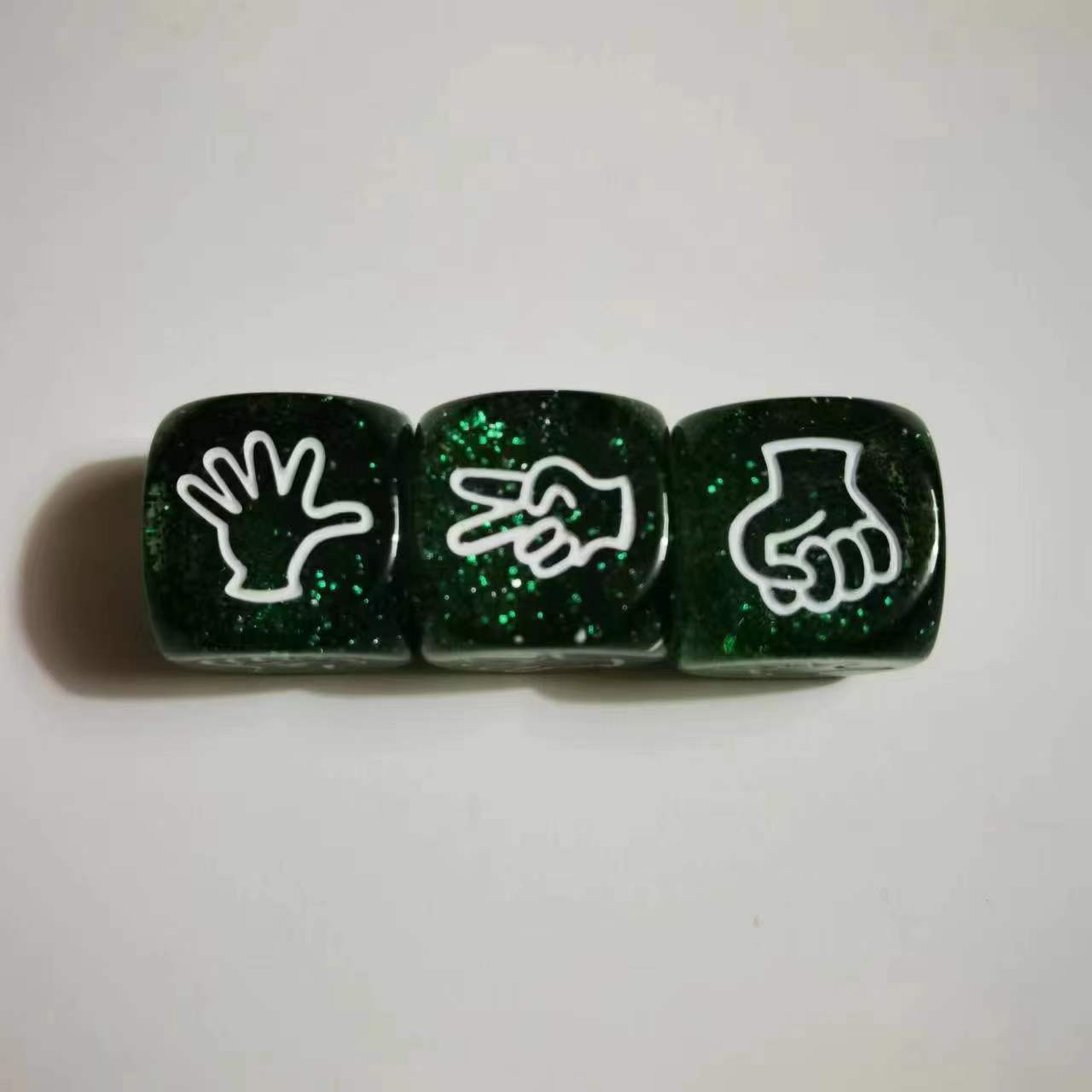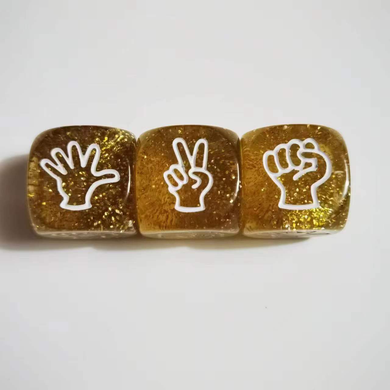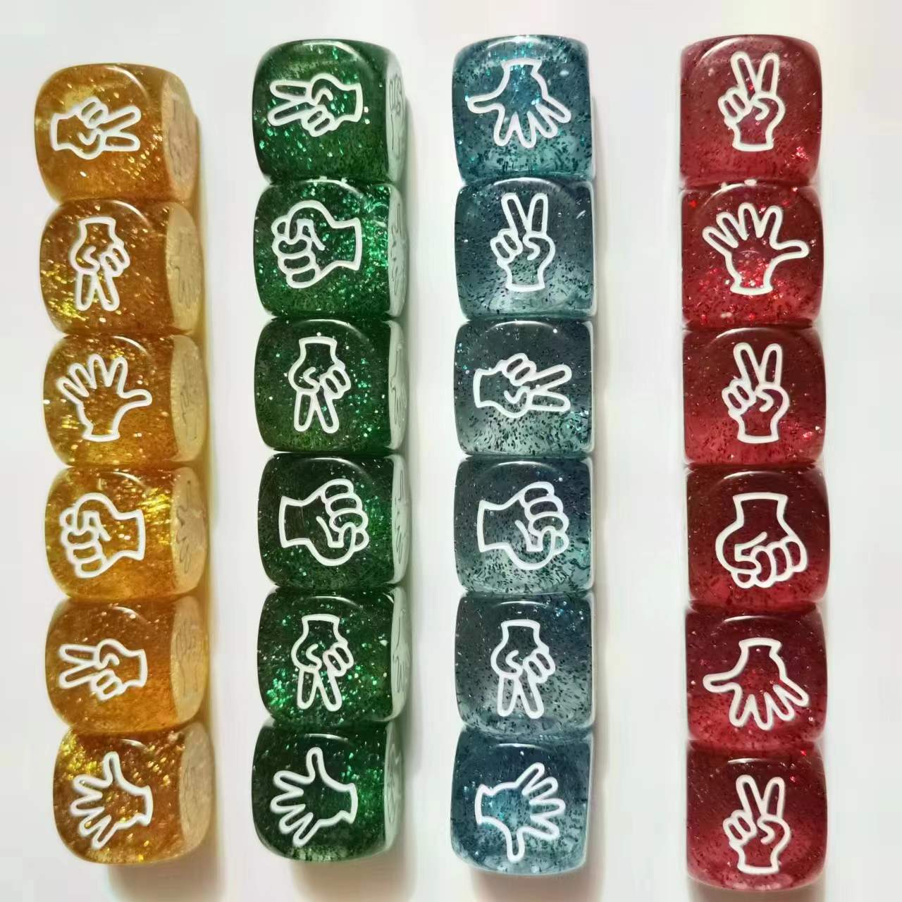 20MM 大号透明闪粉猜拳骰子 剪刀石头布趣味色子 亚克力投子筛子