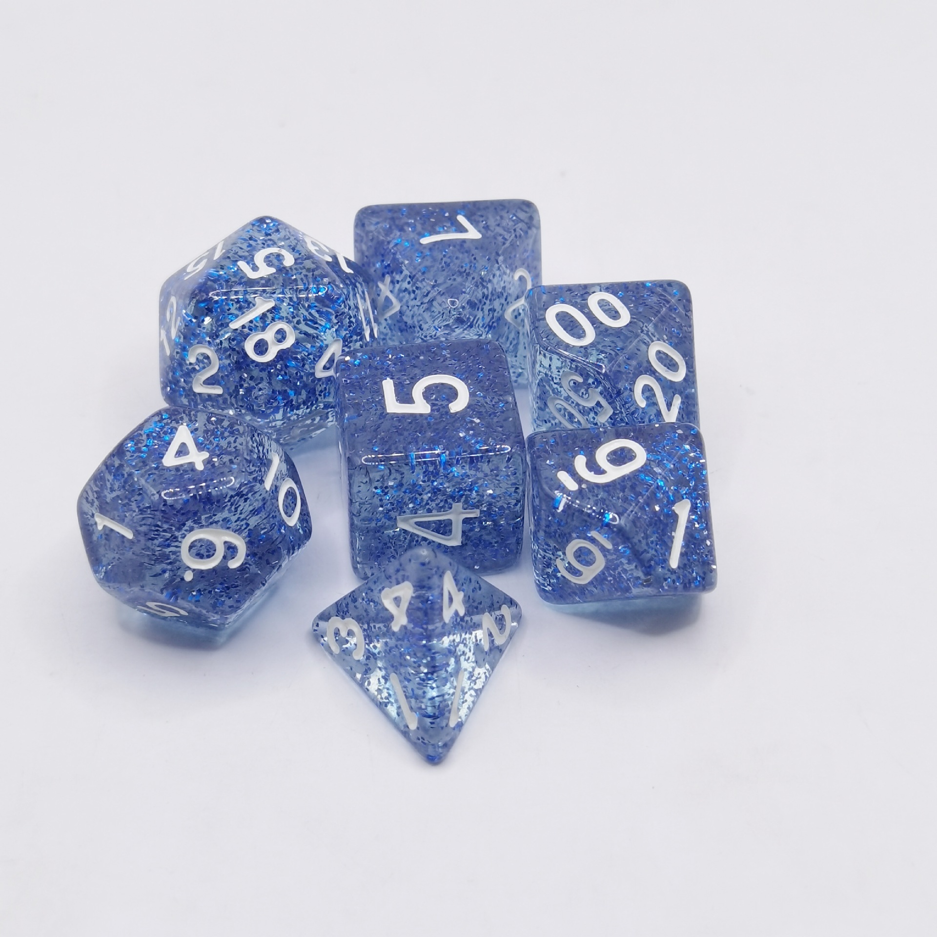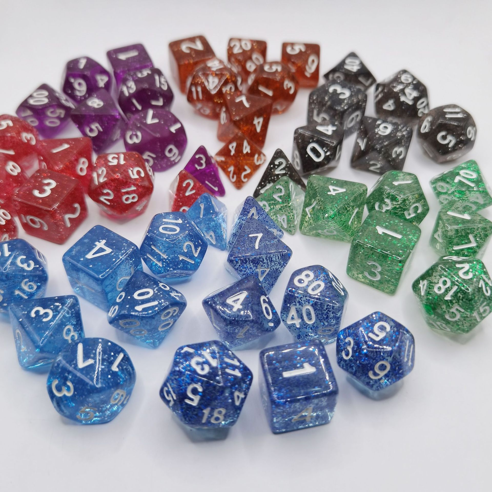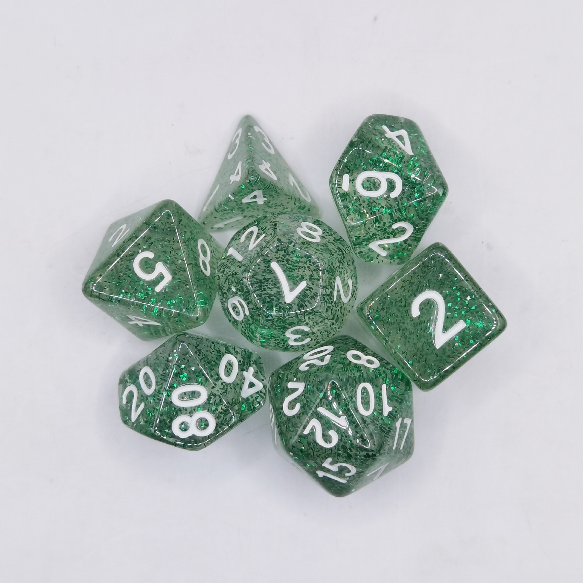 现货透明闪点多面骰子套装桌游跑团七粒一套数字骰子游戏骰子组合