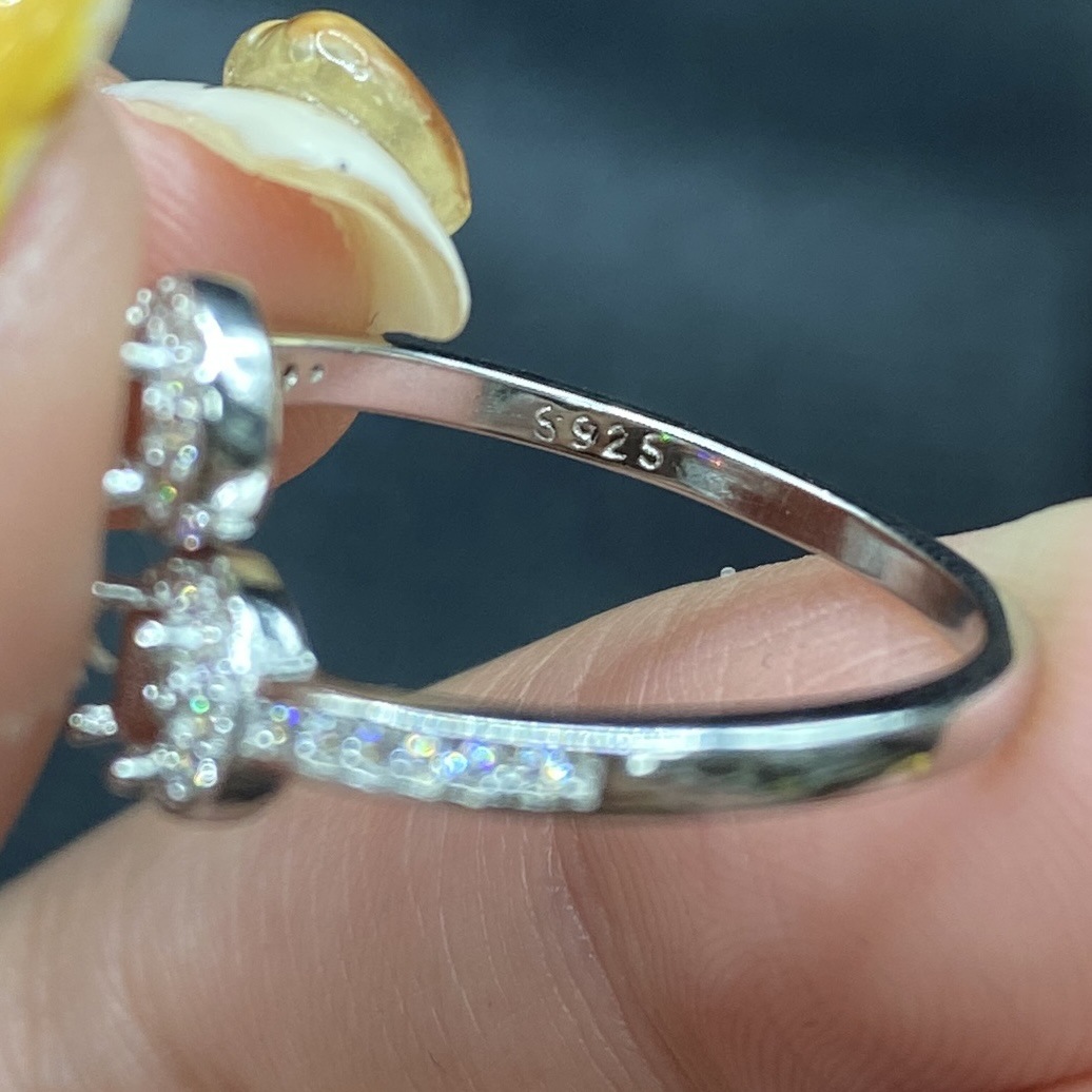 s925纯银戒指女银托蛋面翡翠缅料危料高级感空托diy戒托轻奢饰品