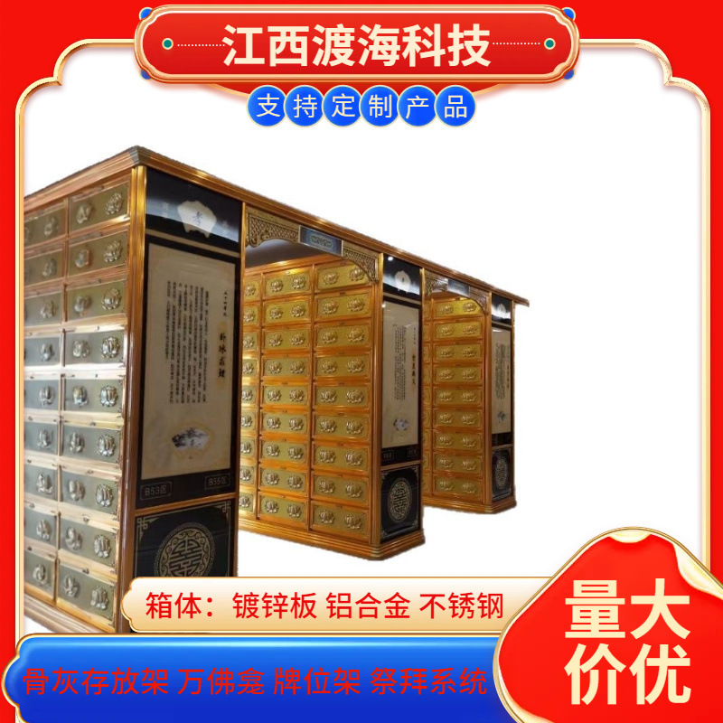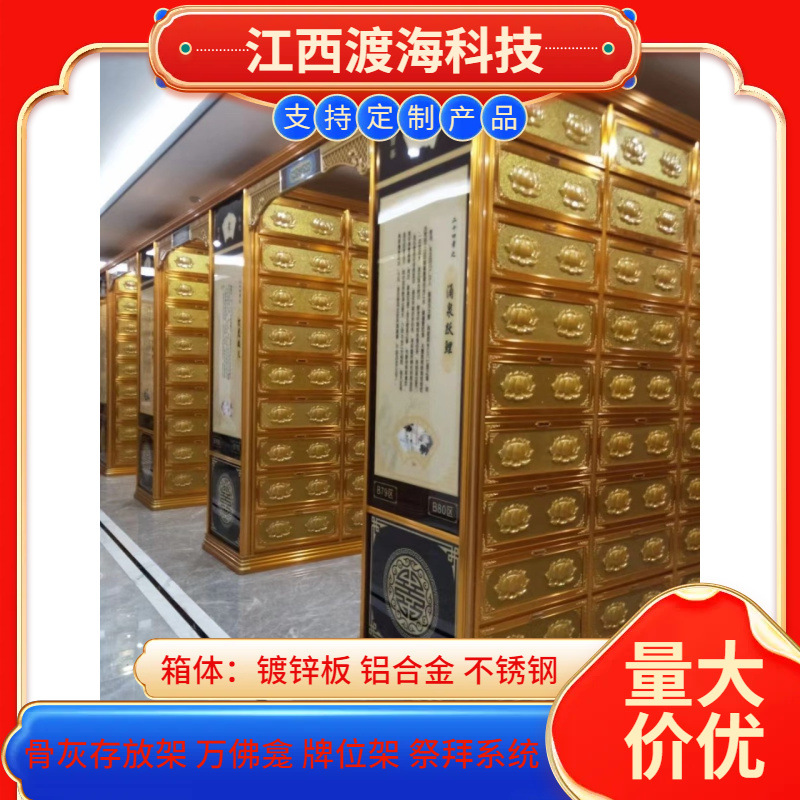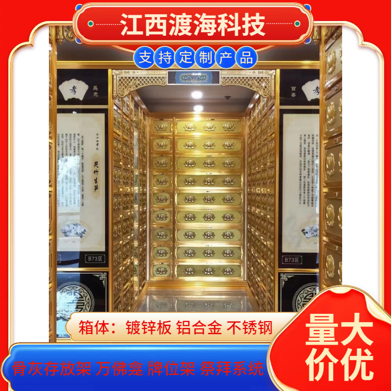 主营产品:骨灰存放架,骨灰盒寄存架,福寿架,万佛龛,牌位架,殡仪馆祭拜系统,寺院智能化管理系统、龙骨吊顶、智能骨灰寄存架