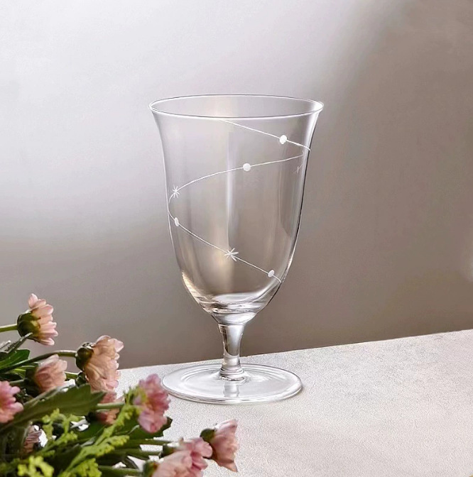 创意星轨高脚玻璃杯家用餐厅酒吧透明玻璃水杯甜酒杯果汁杯红酒杯