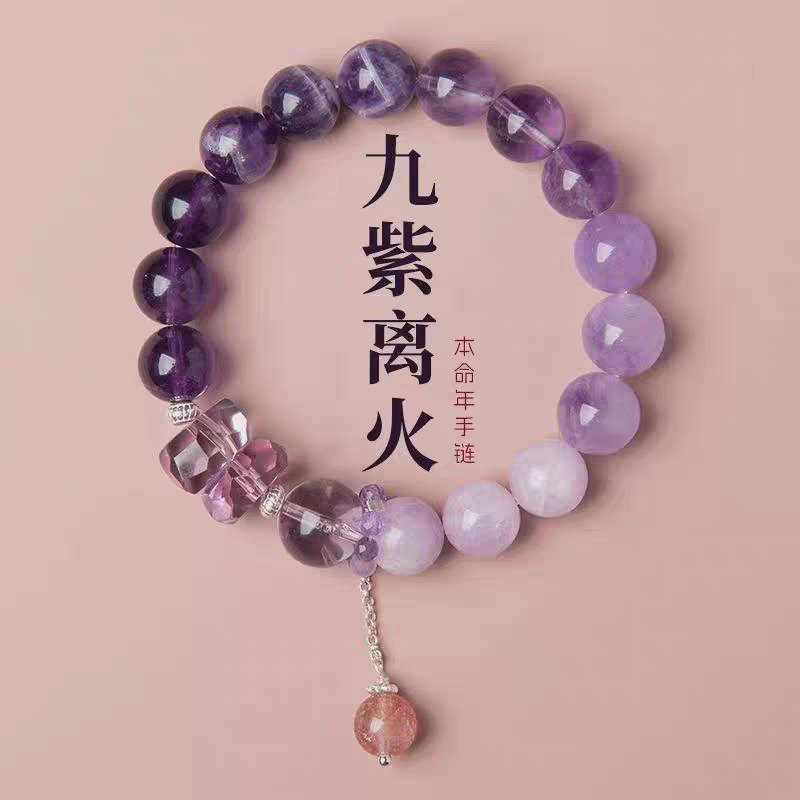 | 颜色 | 8mm九紫离火 转运珠多宝水晶款 | 颜色 | 【九紫离火】腾龙手链 紫幽灵/紫水晶/胶花/黑金超 |
