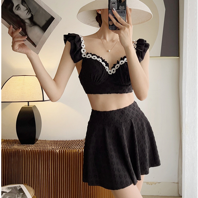 【小雏菊分体】高级质感度假海边分体裙式游泳衣比基尼三件套女夏