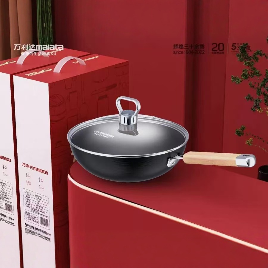 万利达厨房家用平底锅精铁炒菜锅带盖长柄炒锅活动促销批发不粘