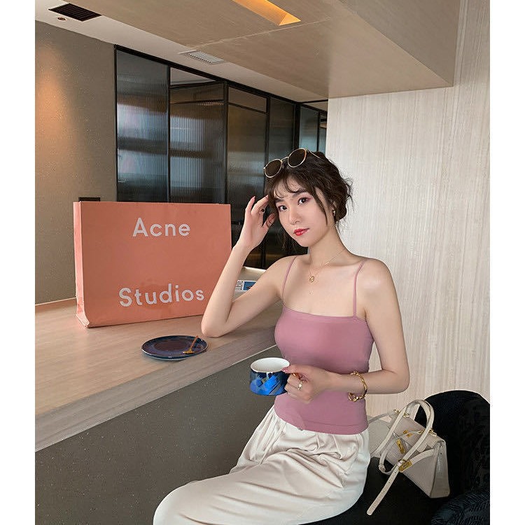 1806#纯色无缝吊带裹胸女一体式胸垫抹胸美背打底内搭背心女