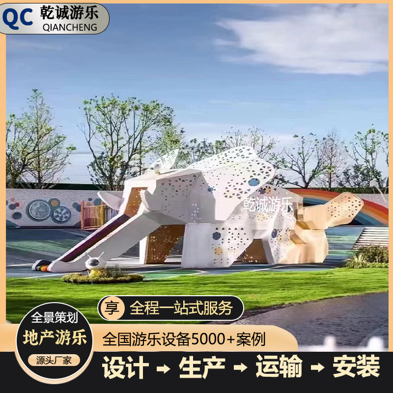 景区公园无动力大象组合不锈钢滑梯儿童非标游乐设备攀爬架工厂家
