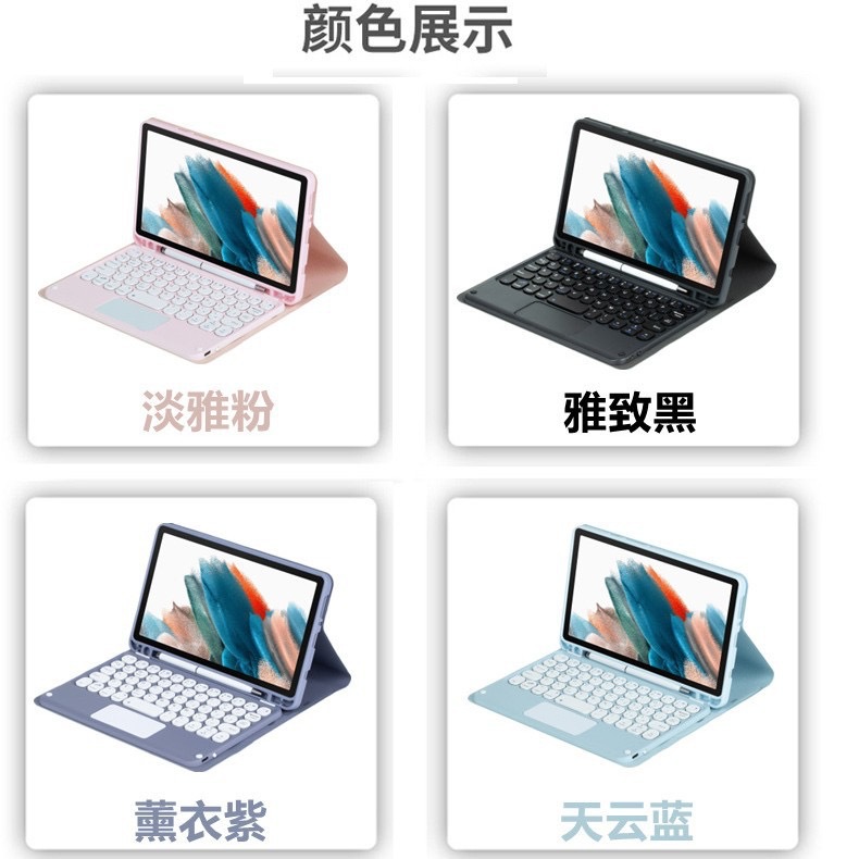 | 颜色 | 浅紫皮套+圆帽蓝牙键盘(触控款) | 颜色 | 暗紫皮套+圆帽蓝牙键盘(触控款) |