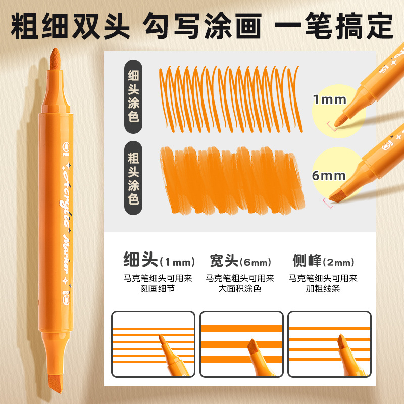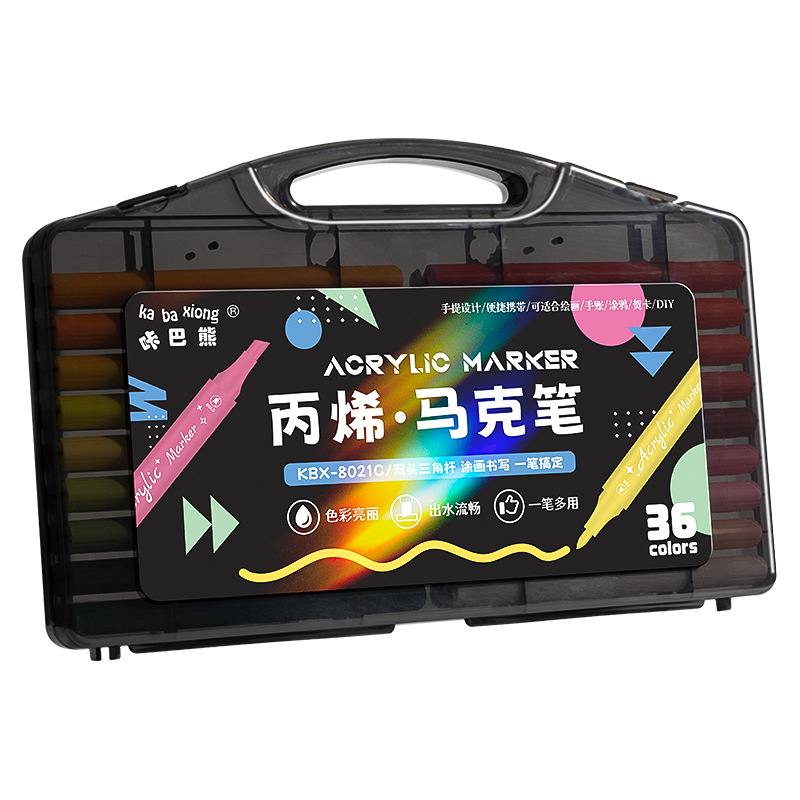 黑盒双头三角杆丙烯马克笔36色水彩笔儿童美术画画专用学生绘画笔