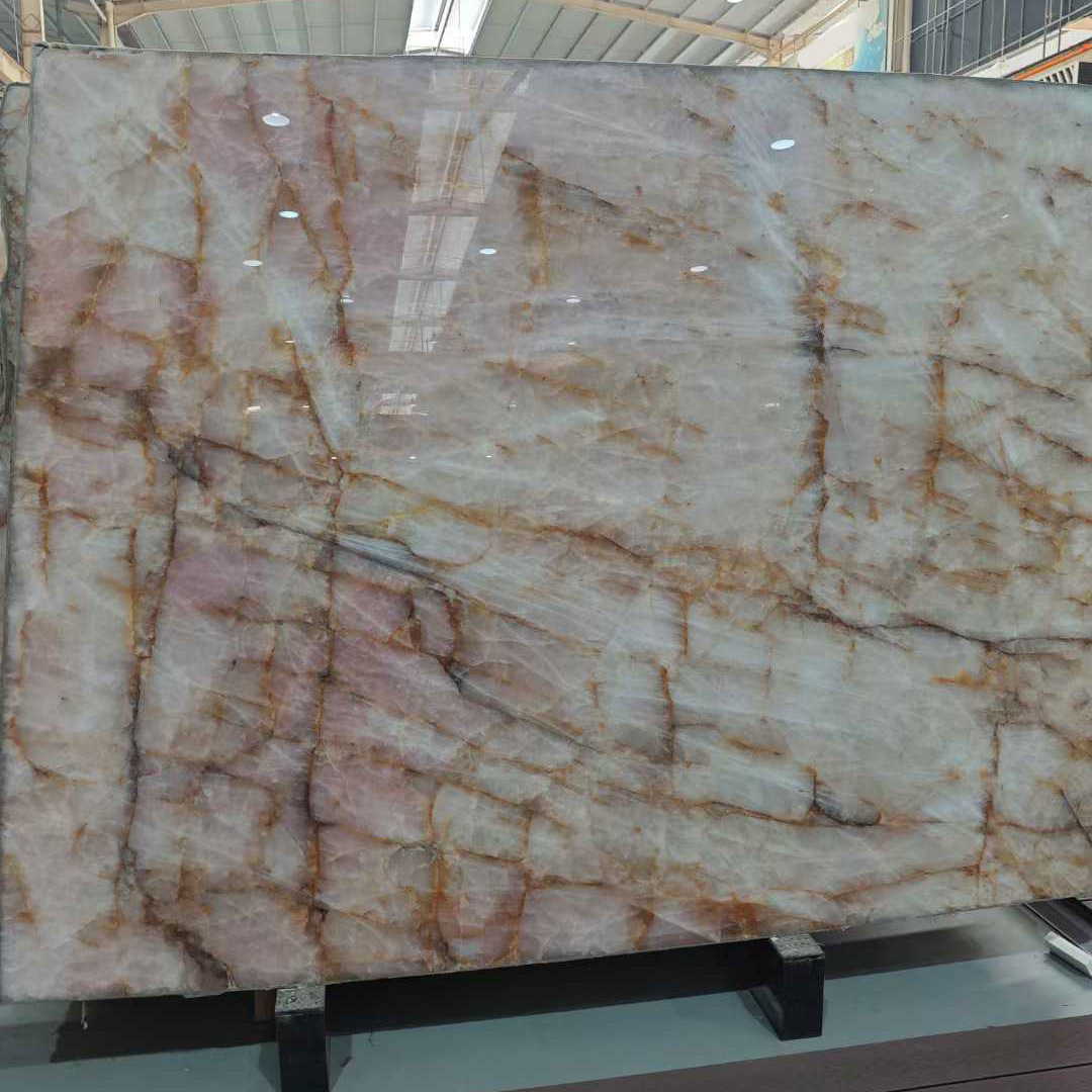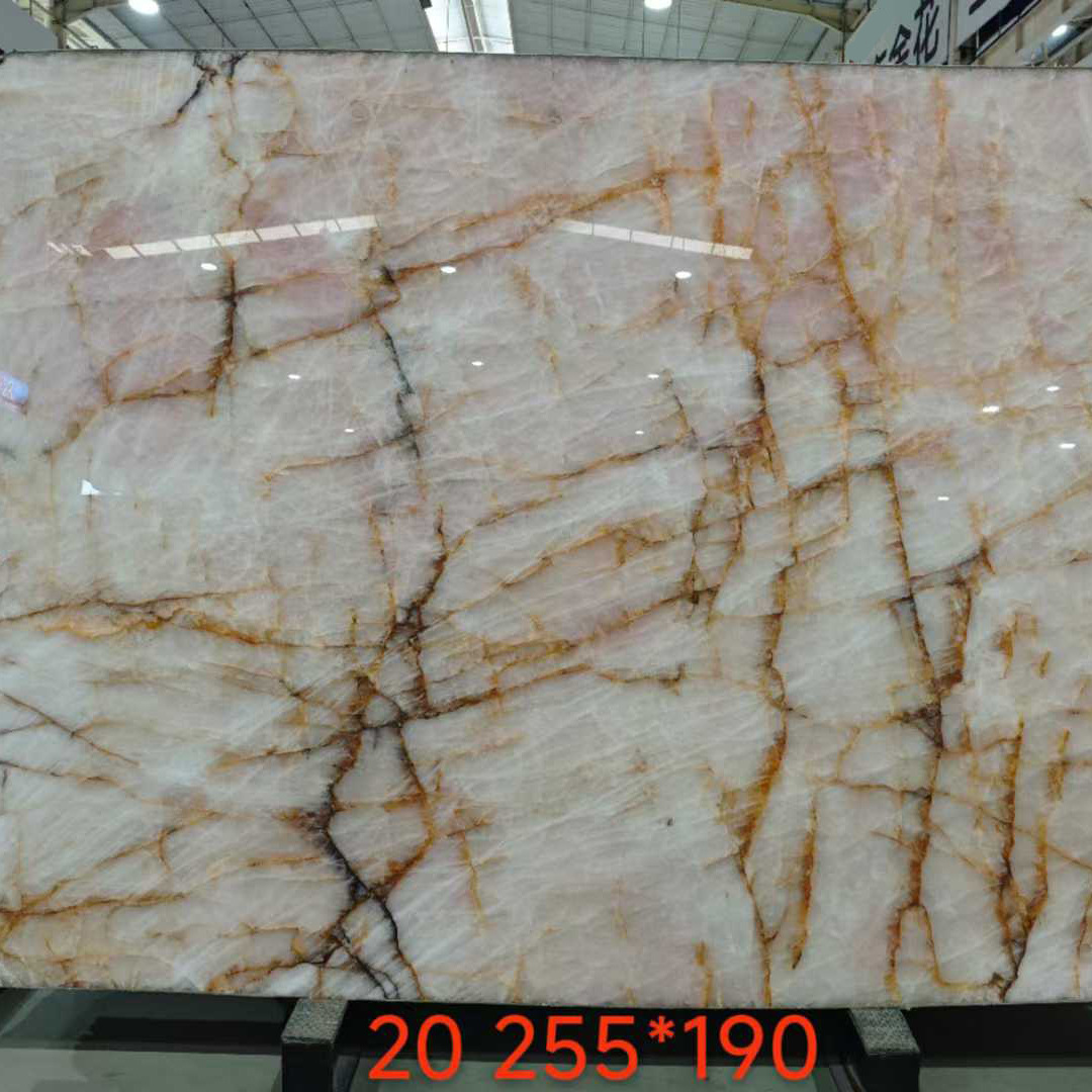 粉水晶奢石定制粉色大理石餐桌橱柜面窗台石材台面