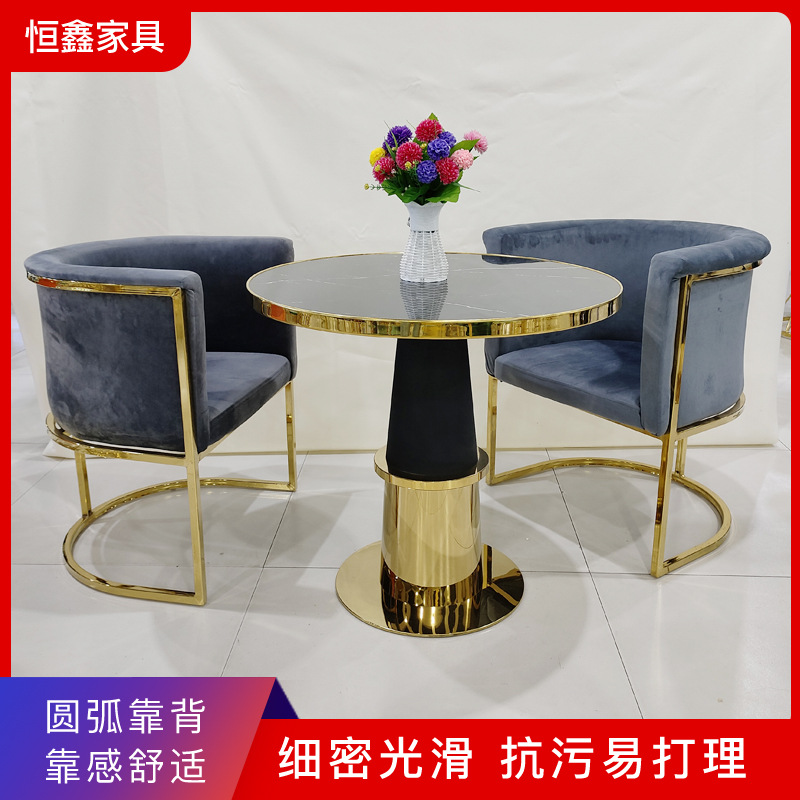 北欧轻奢现代高档商务洽谈椅商用接待岩板圆形桌子椅子桌椅组合