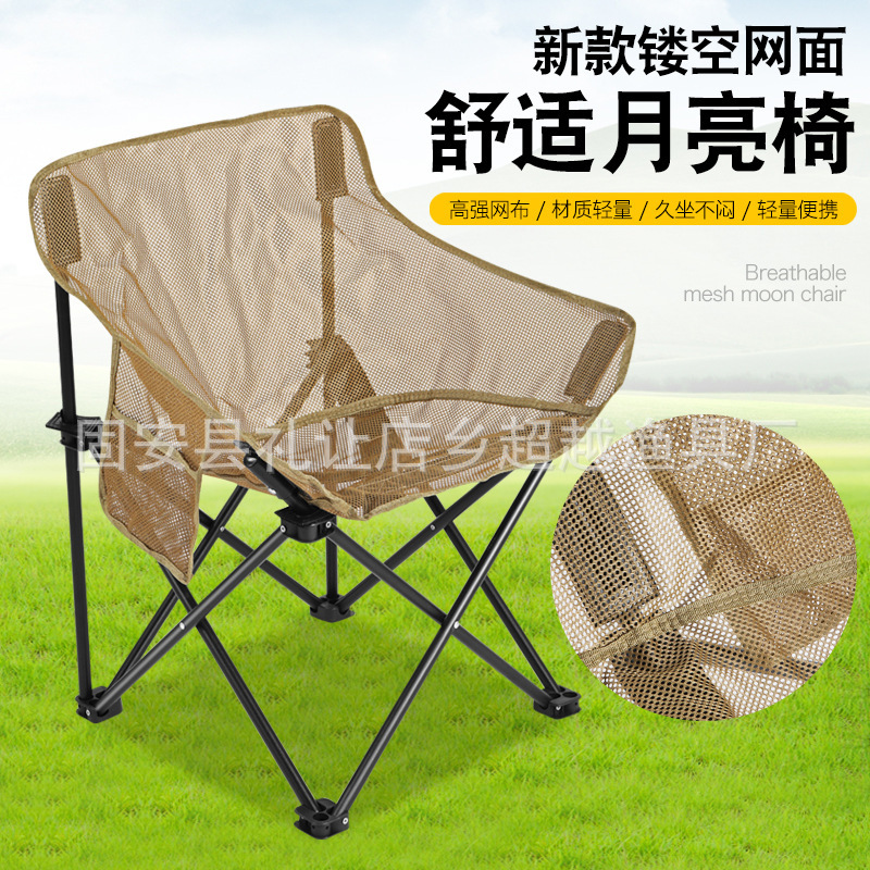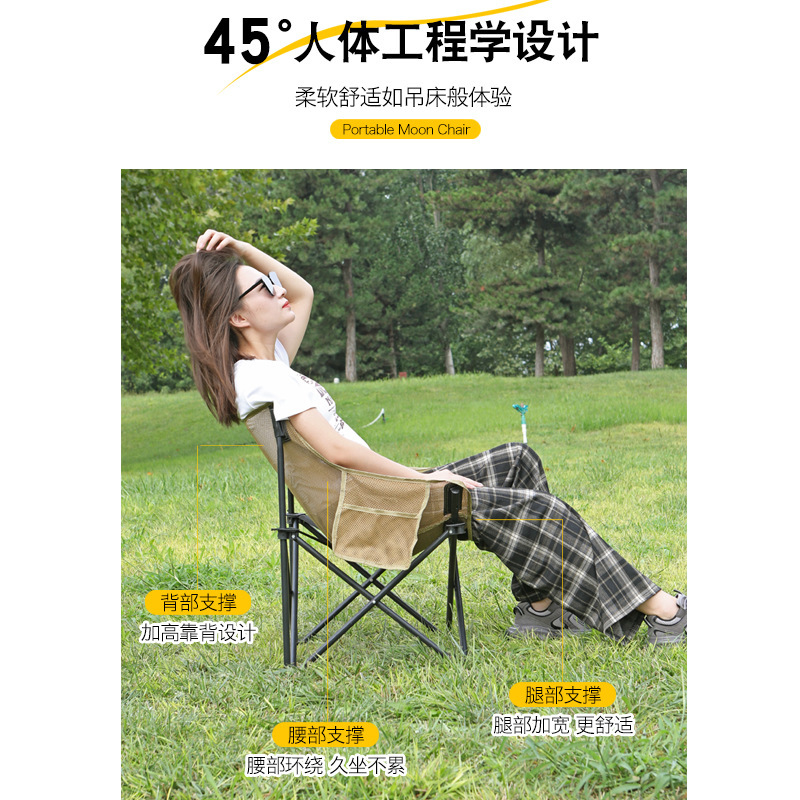 便携网布面镂空月亮椅调节可坐躺露营椅沙滩躺椅午休折叠钓鱼椅子
