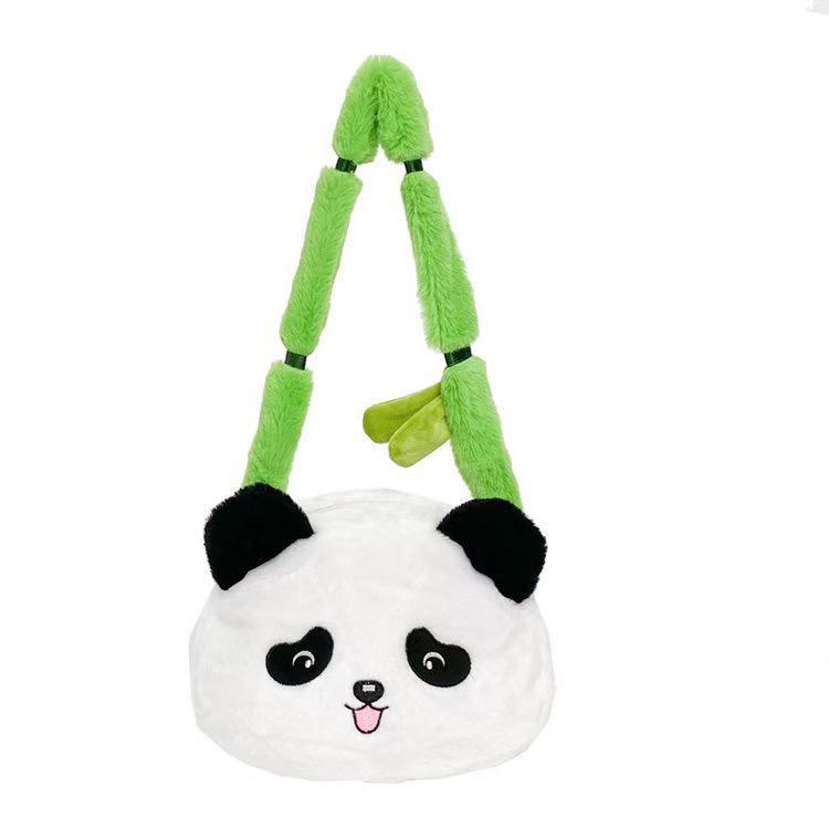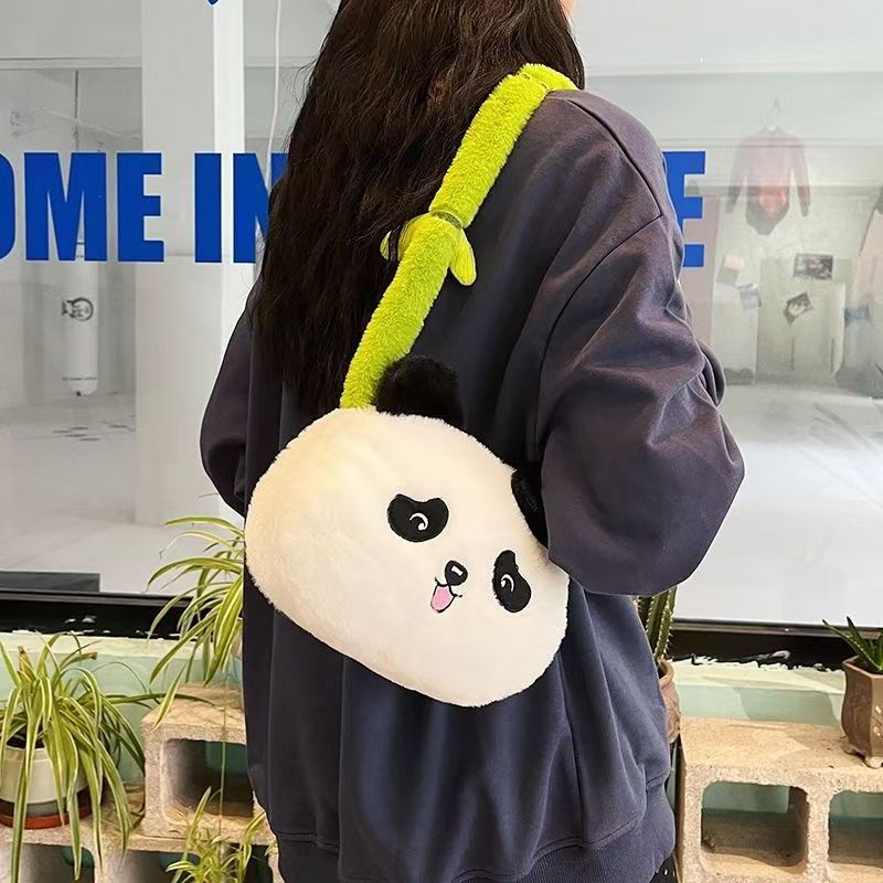 2025新款可爱竹子熊猫毛绒包熊猫抱竹玩偶斜挎包可爱毛绒玩具女生