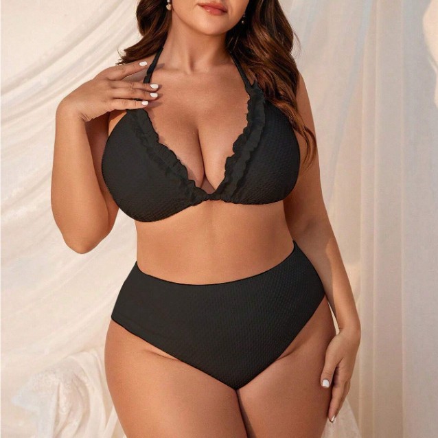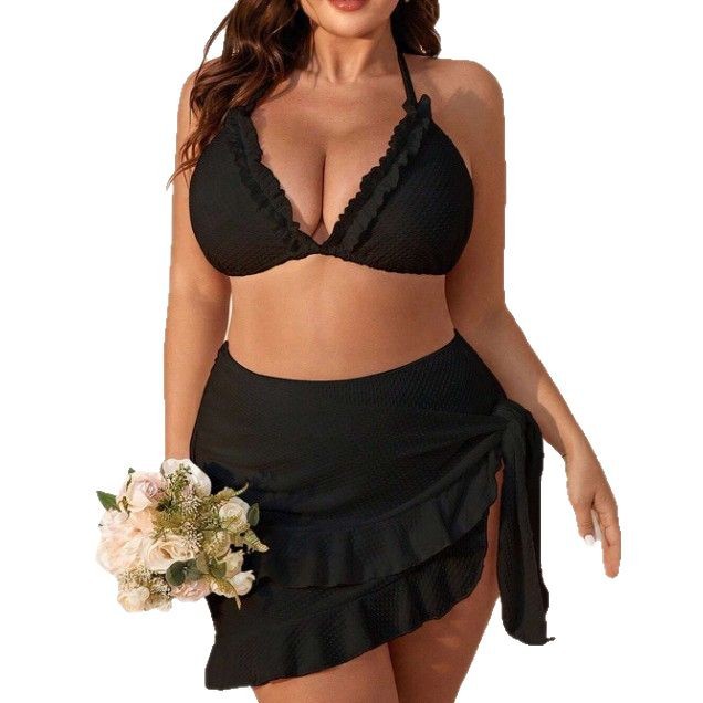 欧美风2025大码新款女装时尚无袖圆领小背心修身木耳边半身裙套装