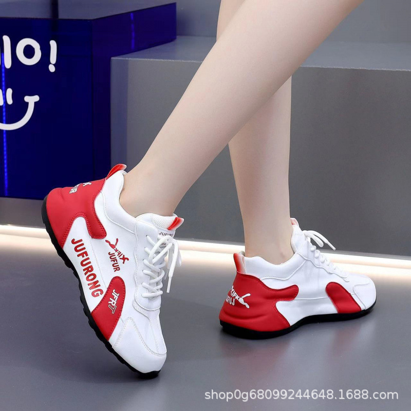 跨境2025春季女鞋真皮老爹鞋ins潮软底舒适健步小白鞋新款休闲运