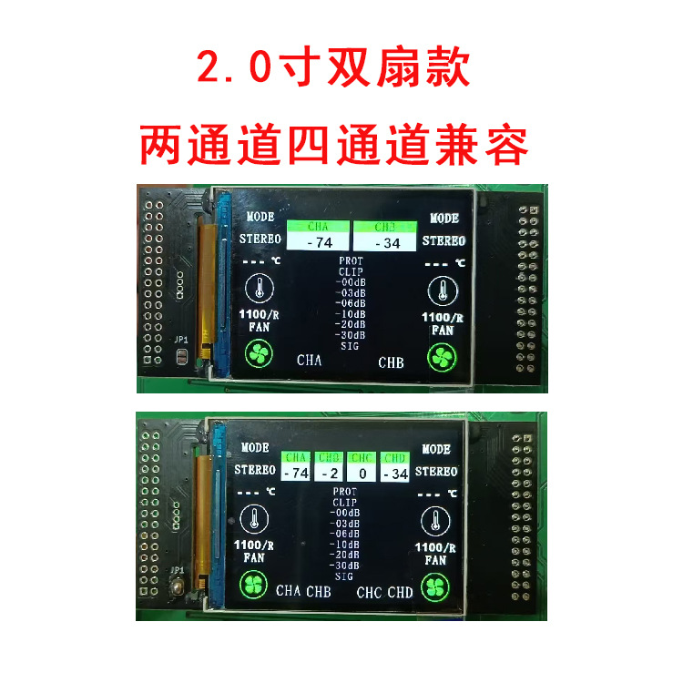 2寸 2.8寸TFT彩屏1U 2U机功放显示模块 两通道四通到兼容可设计UI