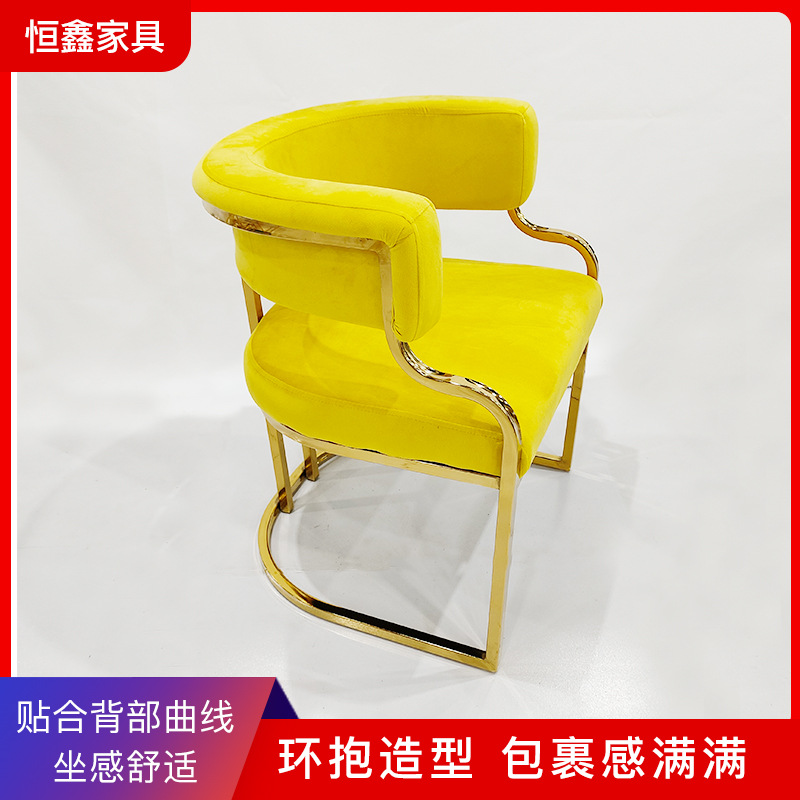意式轻奢靠椅软座舒适艺术感明黄圆弧靠背商业洽谈客厅休息休闲椅